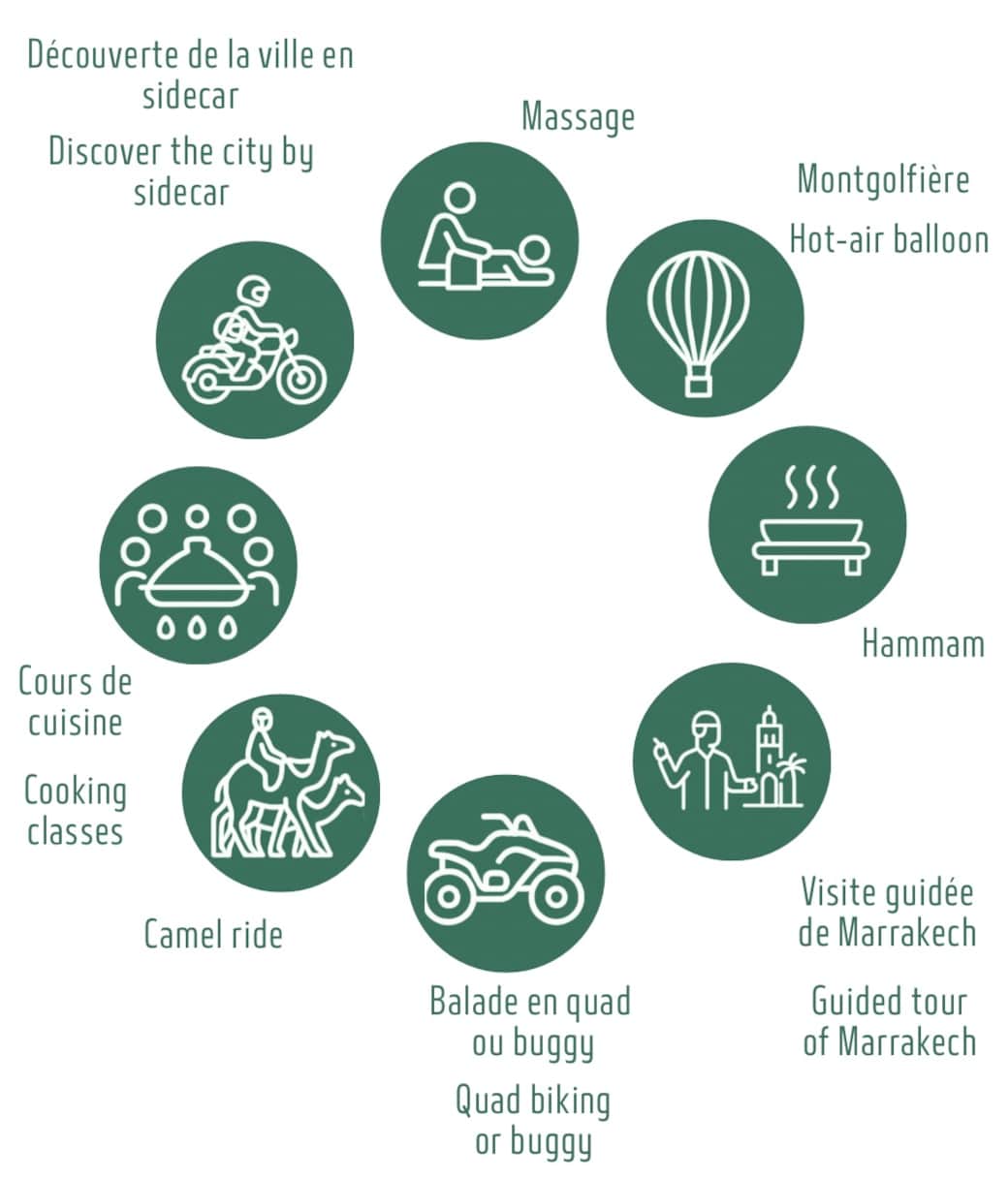 Séjournez au Riad La Smala et laissez-vous guider : excursions, restaurants, expériences exclusives... chaque détail de votre séjour est organisé avec soin pour un moment d'exception à Marrakech.