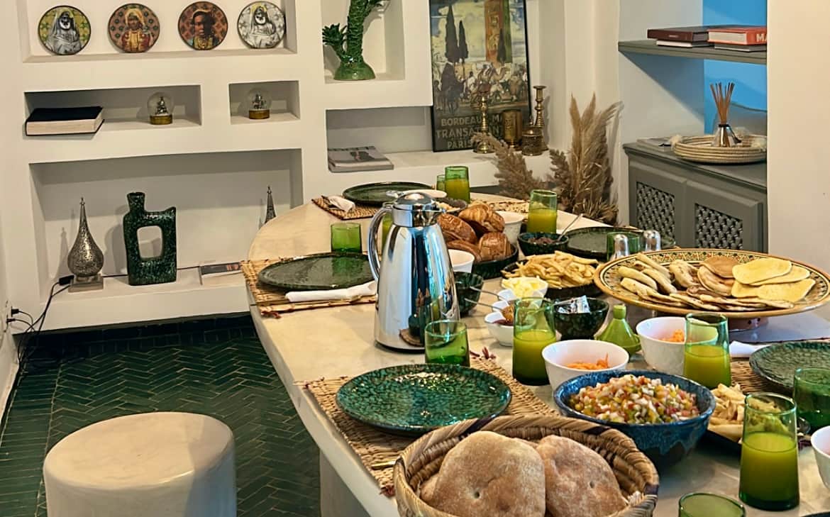 Le petit-déjeuner est inclus dans votre réservation, vous pouvez également demander des repas sur commande. Un moment authentique et gourmand sur notre terrasse ensoleillée, pour vivre la magie de Marrakech comme chez vous.